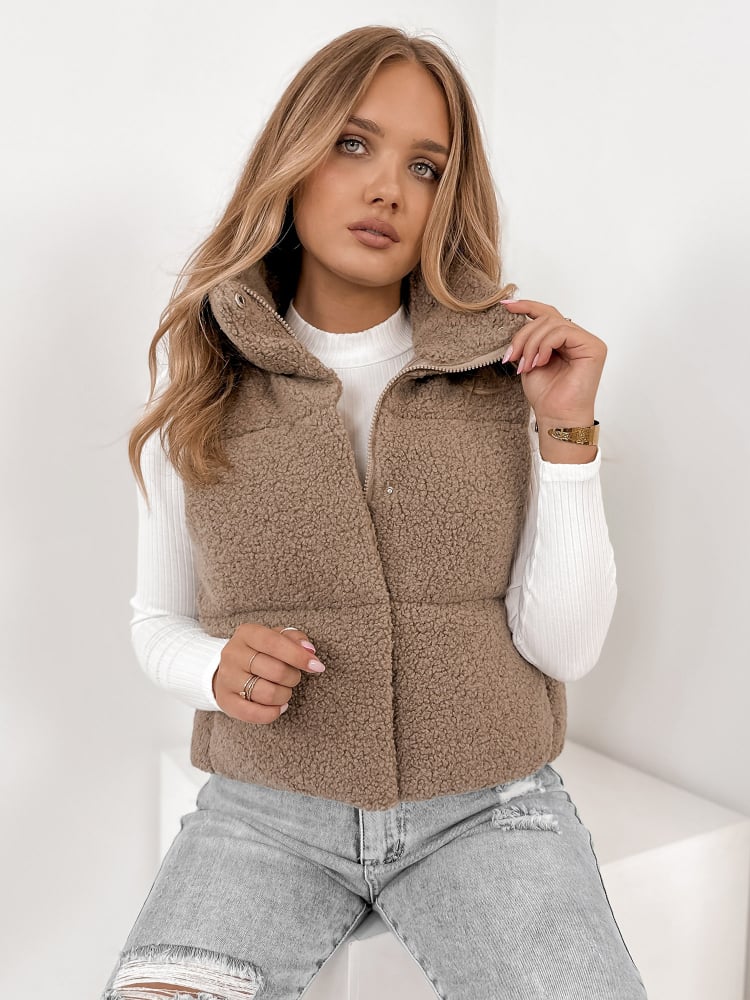 KAMIZELKA BOUCLE GEORGIA BRĄZOWA